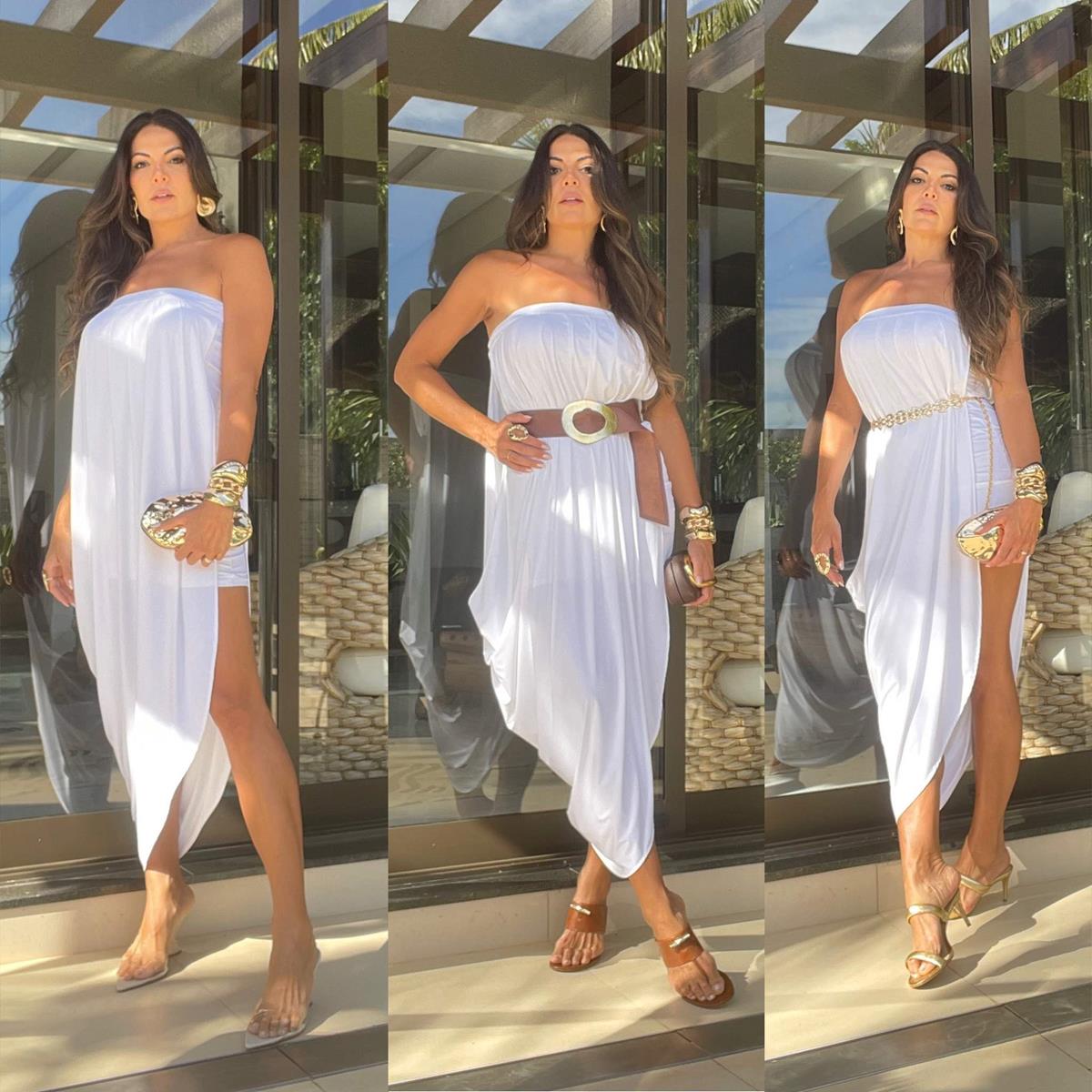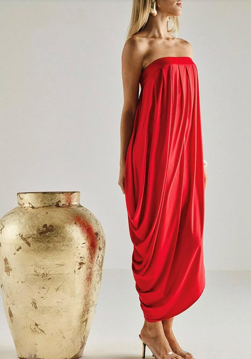Vestido tomara que caia torcido em jersey com tubinho por baixo