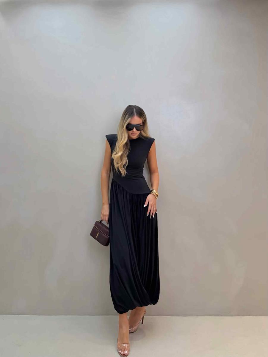Vestido em malha jersey sem magas e desing assimétrico no shape. Chic e versátil o modelo transita entre dia e noite